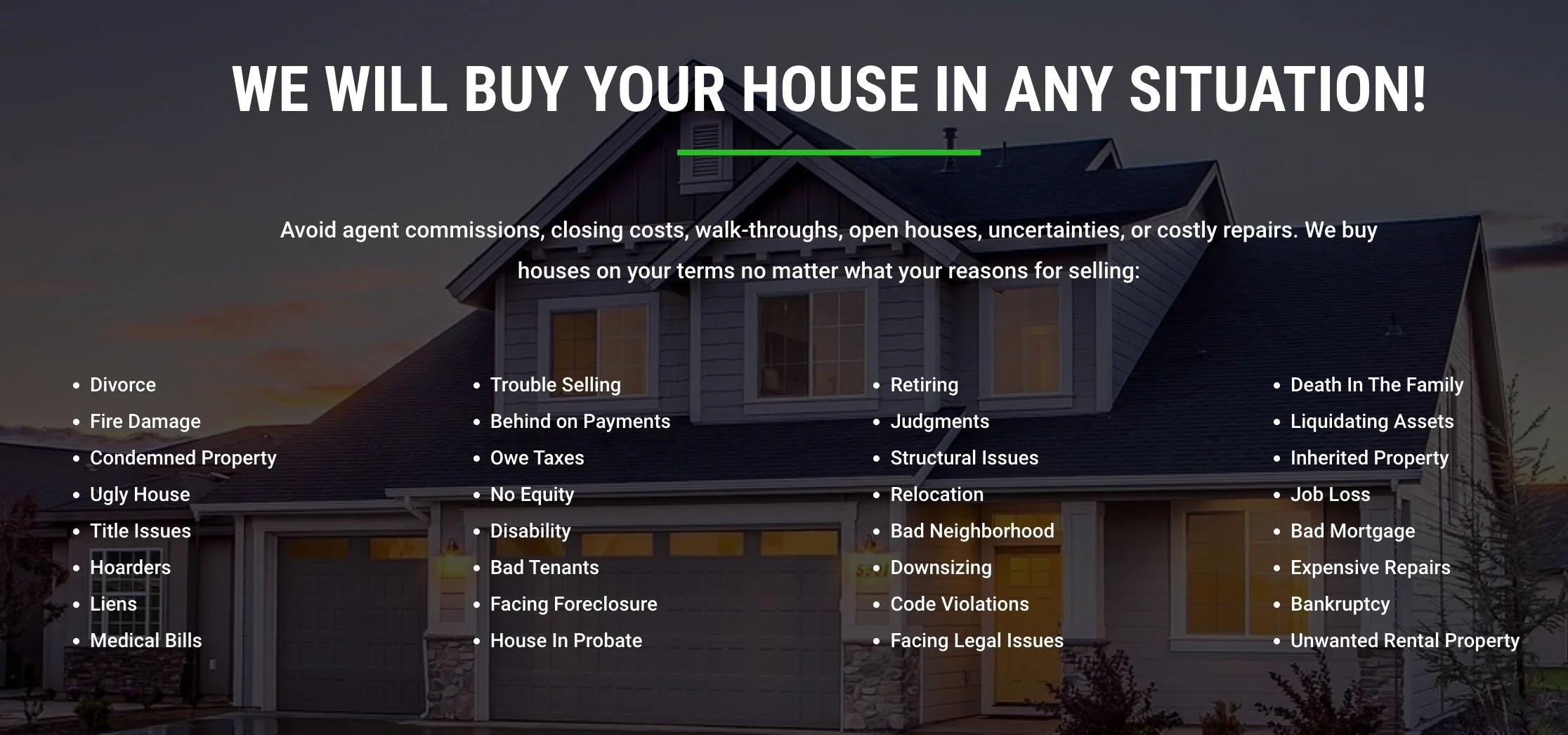 We can offer you the best cash offer and a quick close. We buy houses on your terms.